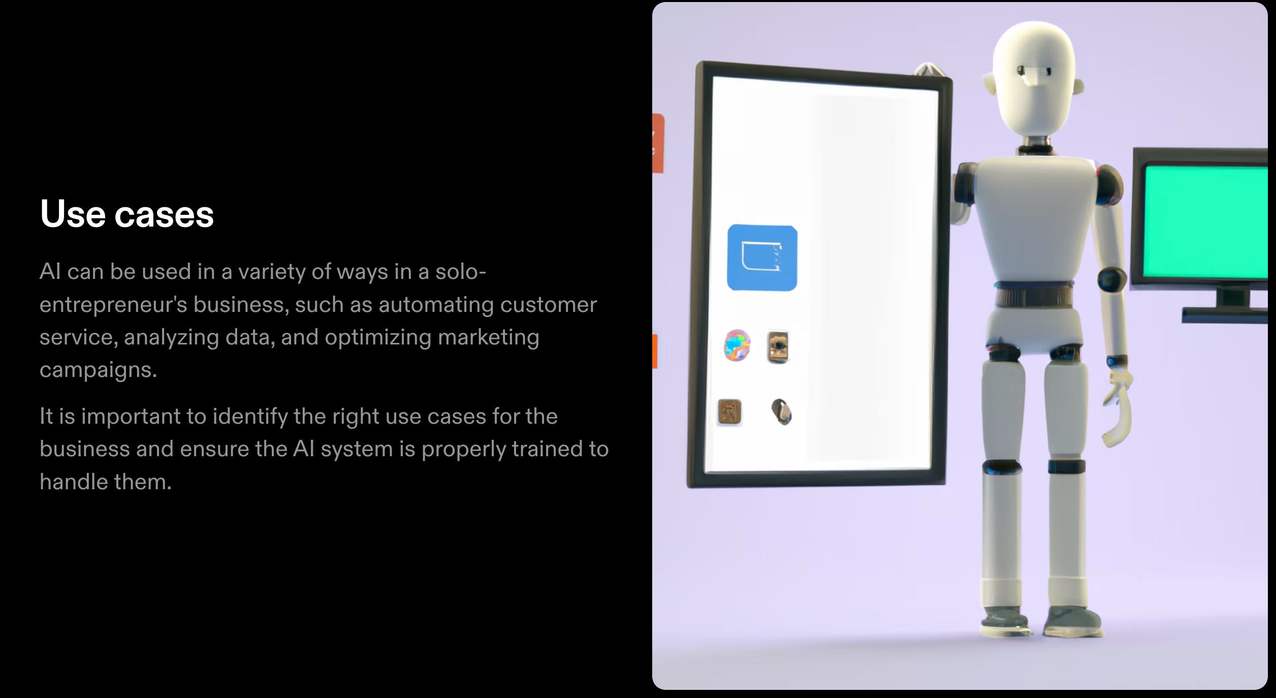 Write a presentation on "How to use AI to automate a solo-entrepreneur's business" that can be used in PowerPoint.