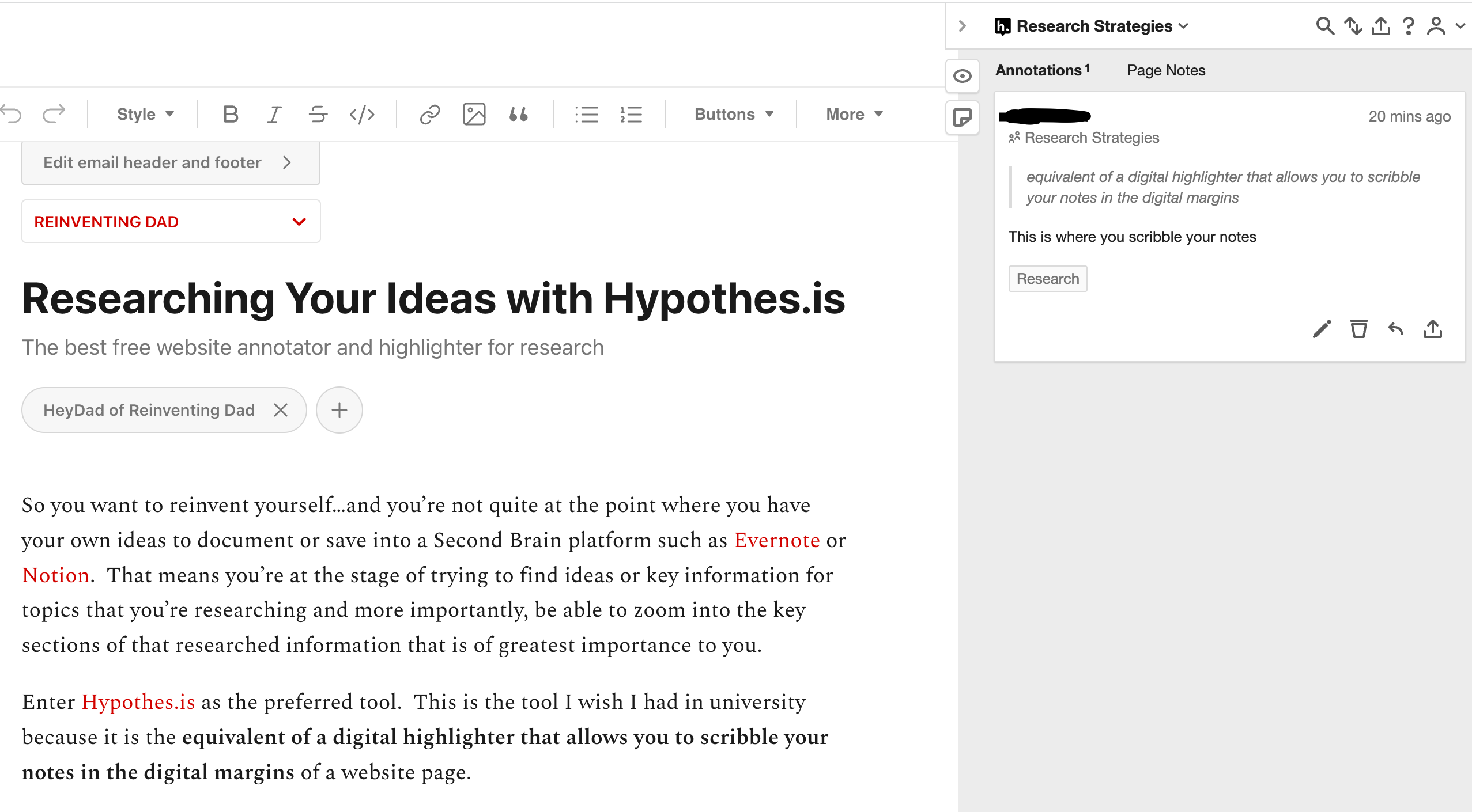 Enter Hypothes.is as the preferred tool. This is the tool I wish I had in university because it is the equivalent of a digital highlighter that allows you to scribble your notes in the digital margins of a website page.
