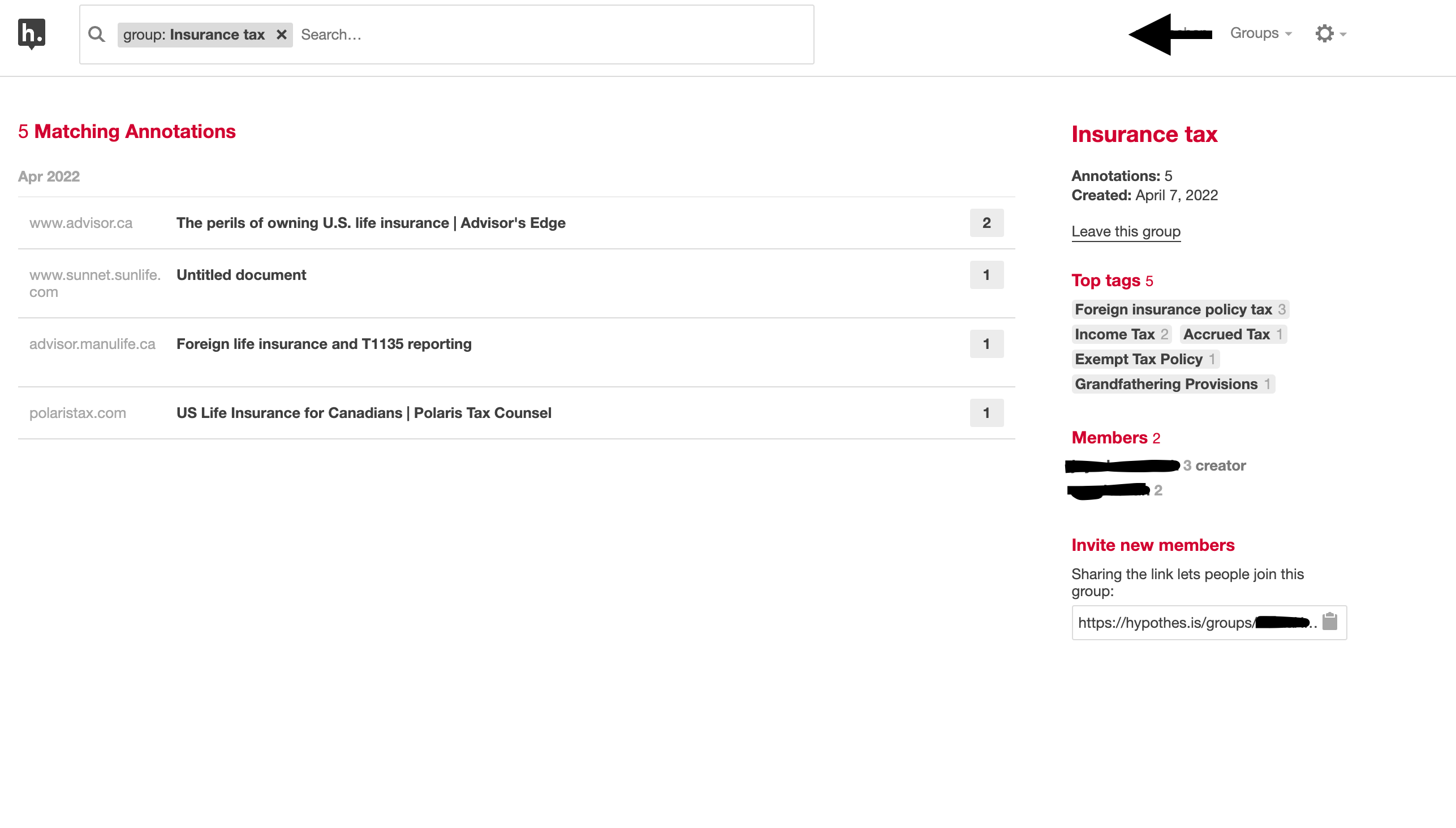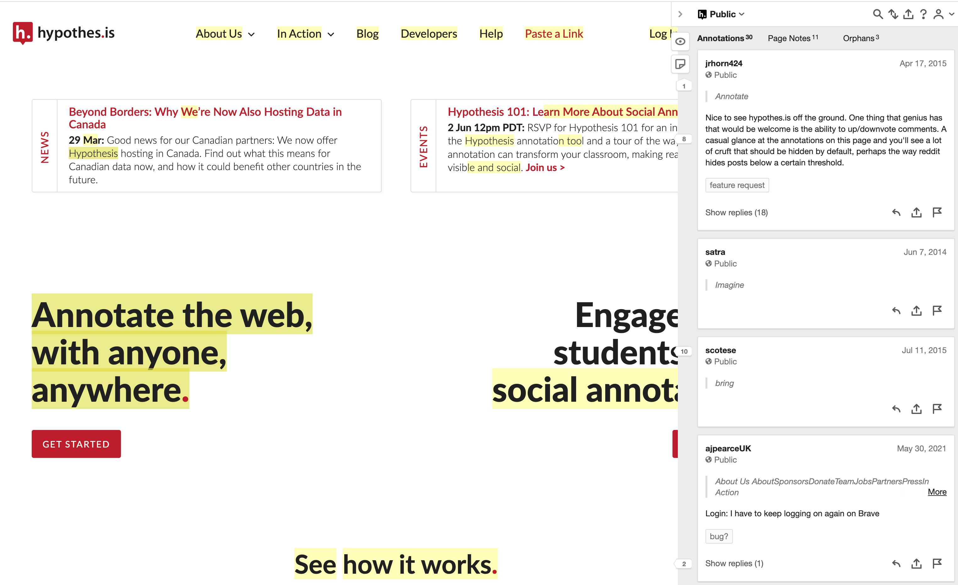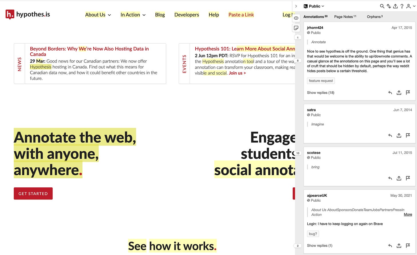 Hypothes.is also has public groups as well too! If you join a public group, you can see all the annotations and highlights on a public web page, such as Hypothesis!